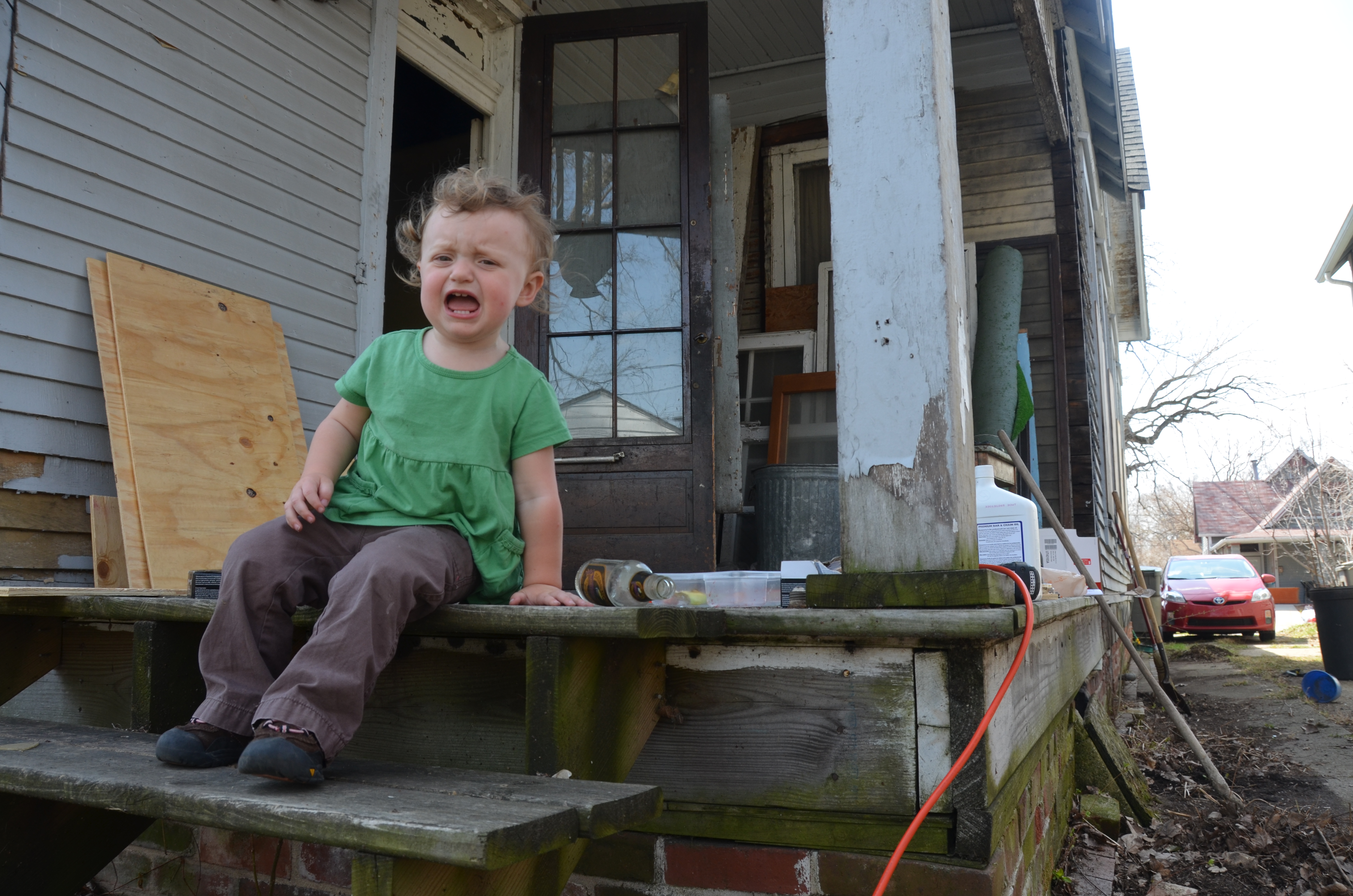 Now that school has started and we are both working full time jobs things have really slowed down. Just to make matters more hilarious we also happen to do a lot of things the hard way, surprise! We make most of our food from scratch and spend a crazy amount of time cooking and washing dishes. We do cloth diapers, have a big dog and no yard (which means multiple walks a day) and we are commuters to and from work. So, we can’t just run through the drive through for dinner, skip the laundry another day or let the dog out to pee. Plus we do other time consuming normal people things like give our toddler a bath and take our 10 year old to piano lessons. For the most part my weekly schedule is normal except that I an a single parent more often. Joe has been teaching kids how to play music by day, comes home to eat dinner with his family and then rehabs the house by night. So you could say that Joe has a flute in one hand and a power tool in the other. And for those of you who like a good math problem every once in a while: flute + power tool = no free time. Joe would say that he is really more of a clarinet player but “clarinet + power tool” just doesn’t have the same ring to it, does it? During the weekends we’ve been taking the kids with us and trying to get as much as possible done to make up for lost time. Thankfully we have parents who are willing to help take the kids so we can work even faster some days. That is a life saver.