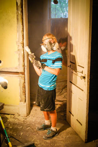 Lastly, we’re not fast at this whole rehabbing thing since we usually need to research obsessively for weeks before attempting the next project. To make matters worse, Joe has to stop after each little step and over-think the next one. Projects can really drag on that way. [edit from Joe: Hey!] So, in short, it’s not easy and the kids (bless them) make it a touch complicated. The summer has come and gone and our lofty timeline has stretched into next spring. [edit from Joe: To be fair, our original timeline was way back when we didn’t think we would be tearing down walls, building new walls, or finishing the upstairs.]