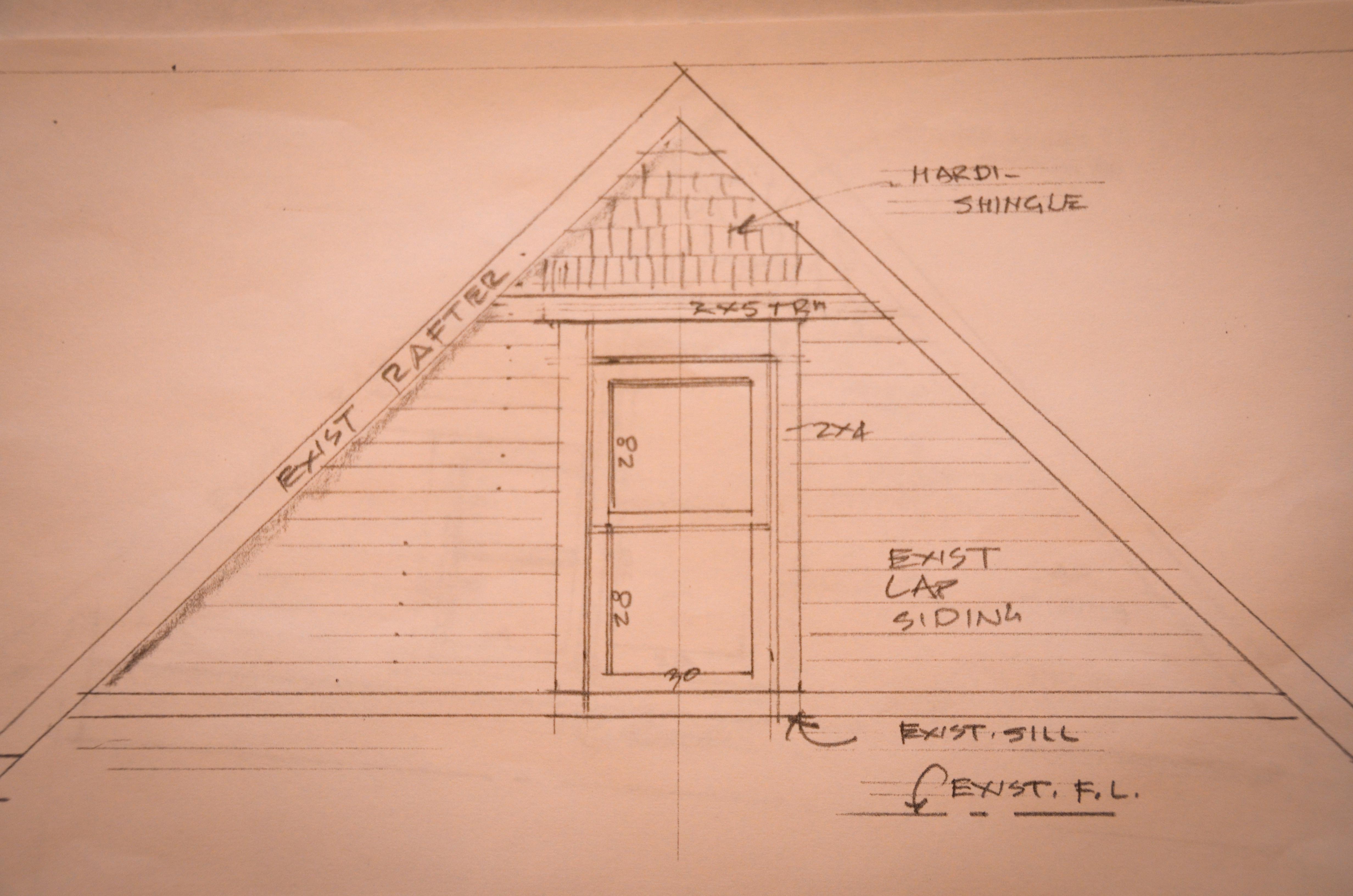 While the work continues on the hvac and plumbing, Amy and I have been busy preparing for new windows! If you recall, the front gable of our house had been butchered with a gigantic fan and vent opening.