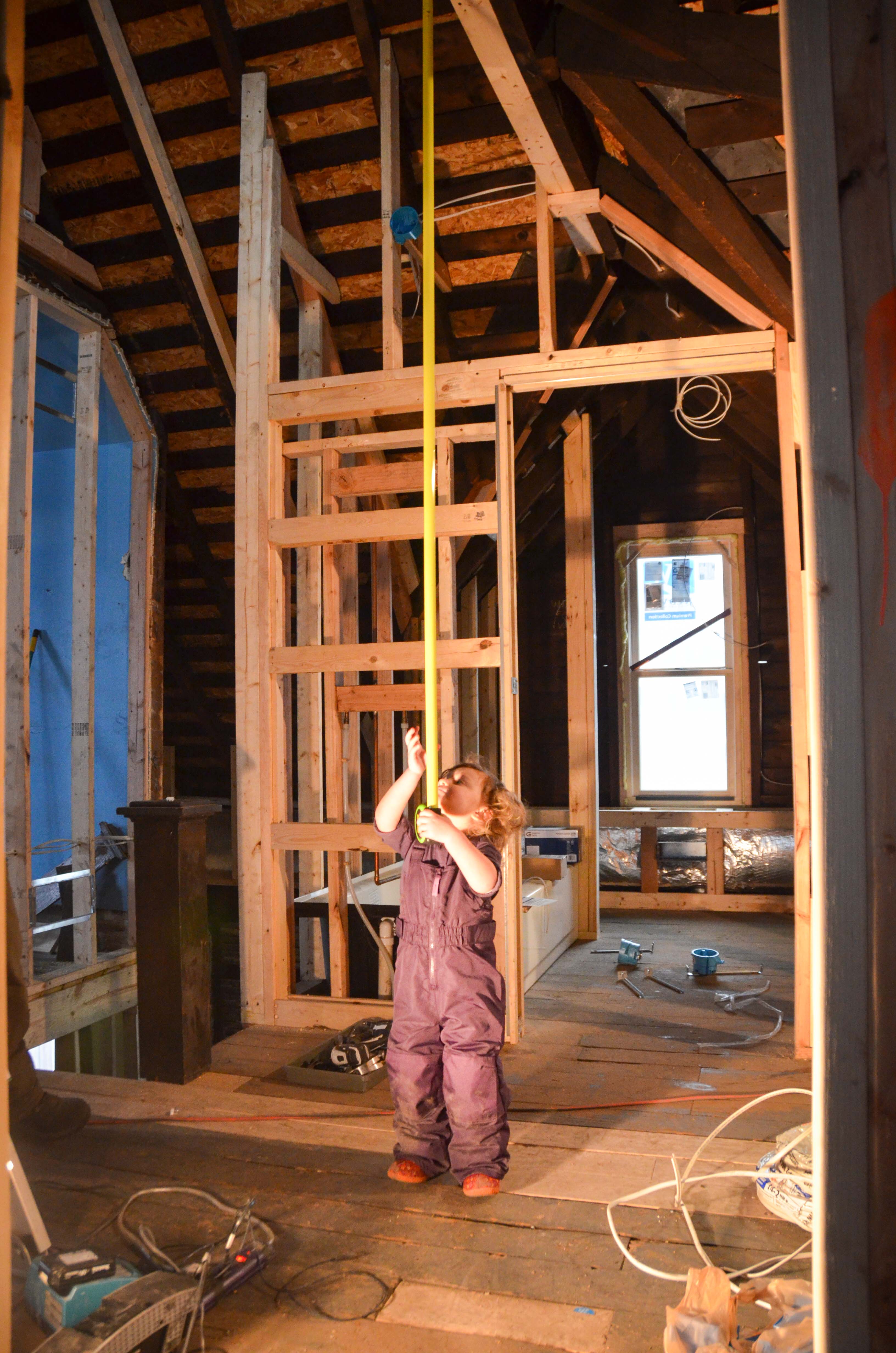 Have you ever heard the expression, “measure twice, cut once?” I learned this valuable lesson way back in high school when I worked at a local pipe organ shop. As a side note: When I was working on a particularly unpleasant job at the shop my boss liked to encourage me by telling me that I was “building character.” I can be found repeating that to myself over and over again when I’m in the crawlspace or knocking down plaster over my head. Anyway, that “measure twice, cut once” expression probably accurately reflects that ratio of “thinking” time to “doing” time. For instance, Amy and I spent our entire allotted time at the house the other day…. just thinking. Didn’t even lift a hammer. Just a lot of standing, thinking, and occasional words of agreement or disagreement. Thinking does take up valuable time and I know my over-thinking drives Amy crazy, BUT I would like to point out that thinking ahead can also prevent unnecessary time moving-stuff-around time (#9) and time spent tracking down tools (#7). It also results in fewer mistakes (#4) which results in less additional time going to the hardware store (#2). Finally, thinking long and hard the first time means less of a chance we will change our mind later (#5), which means less time worrying about what to do with the kids (#3) and hopefully results in a final product that we can be proud of. So, in reality, by my reasoning, I’m actually SAVING us time!