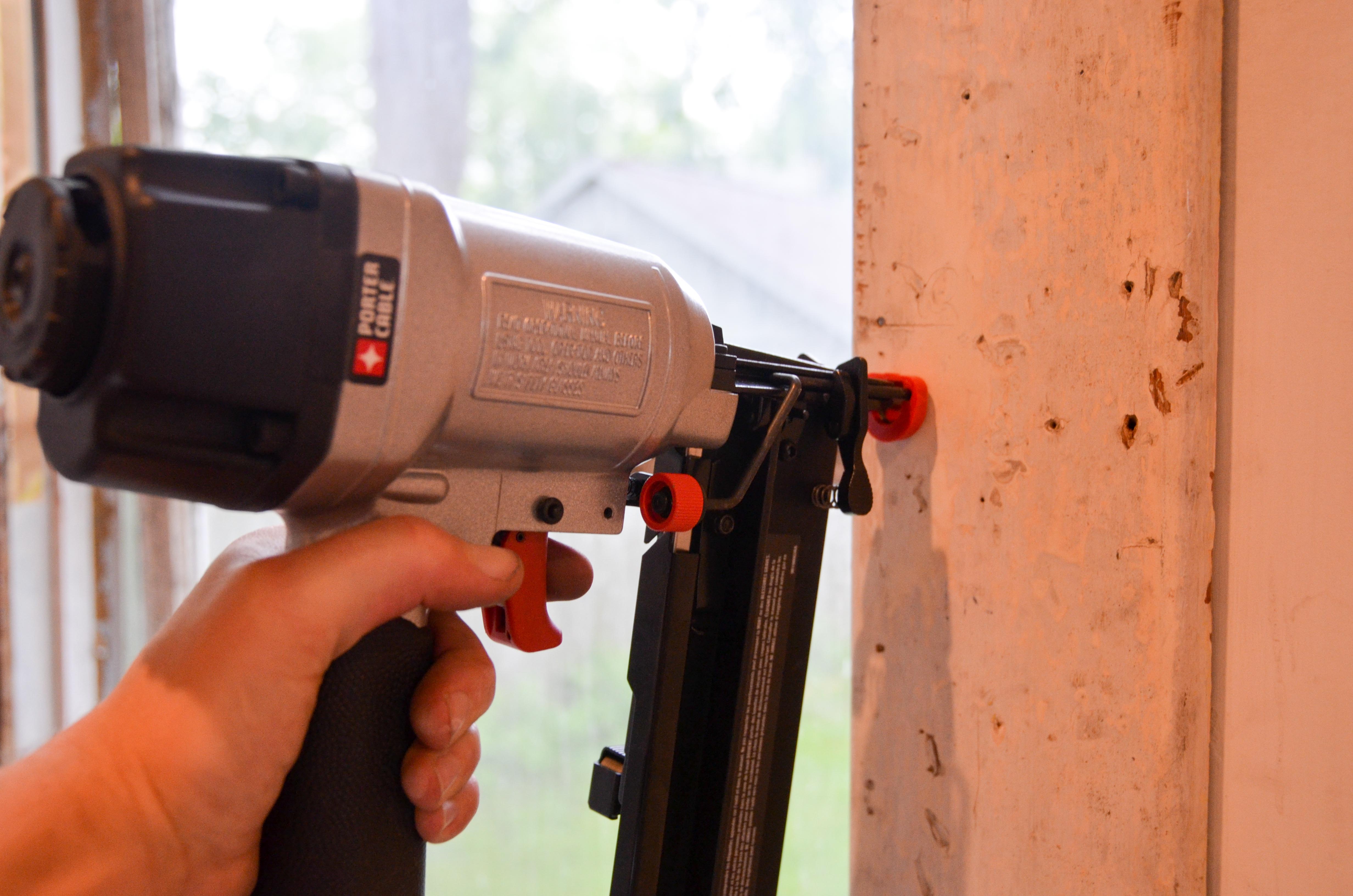 It was at this point that I flashed back to the last time I installed baseboards during a previous small renovation project. I did most of it with a hammer and nails before finally asking a friend if I could borrow his nail gun. That nail gun made the job ten times quicker, easier, and led to a much better finish result. I needed one of those now! It was also at this point that I realized I was in possession of a Home Depot birthday gift card with enough money to almost cover the purchase of this new toy – thanks Mike and Nancy!