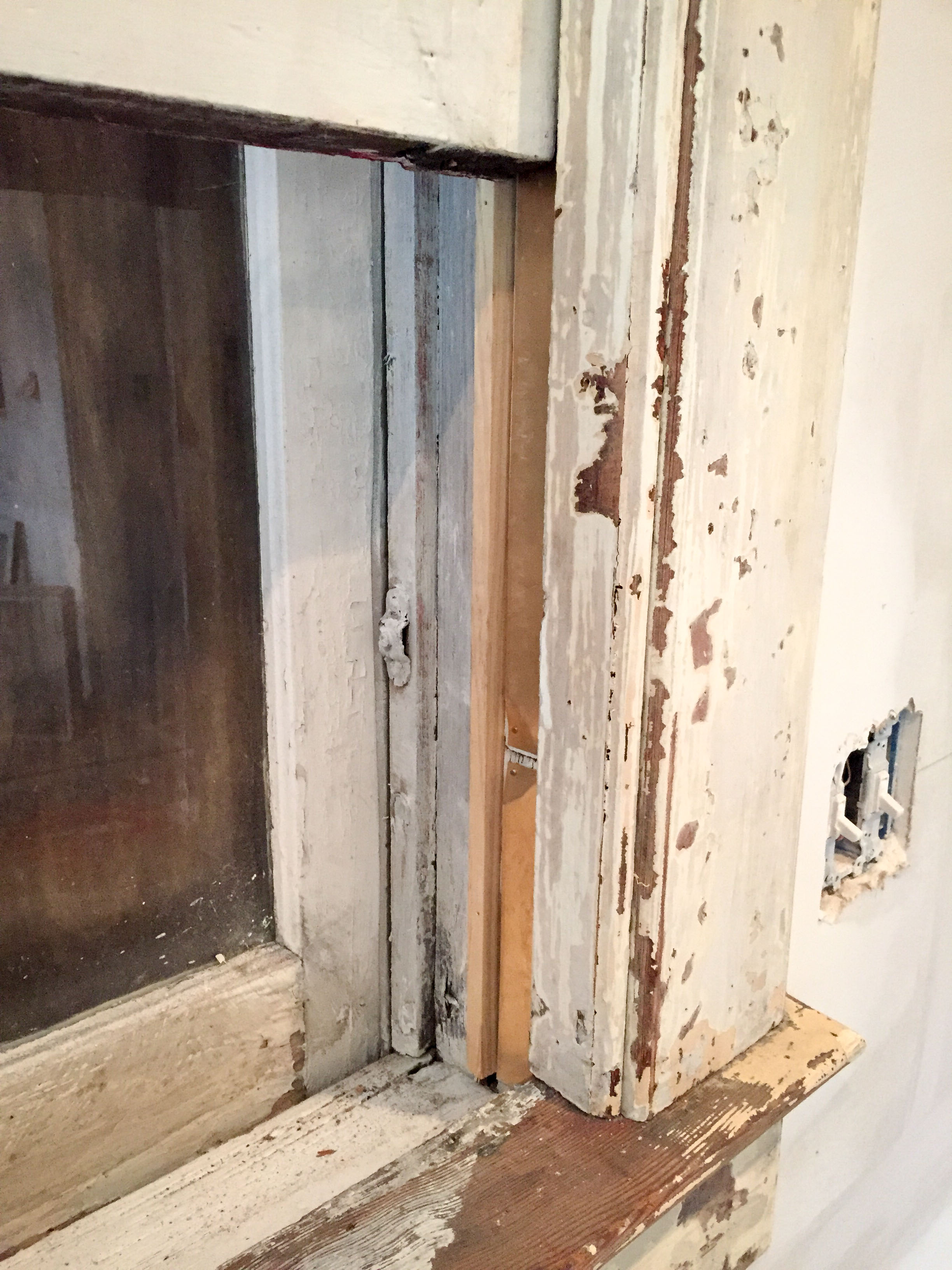 The window casing (trim) was removed at the very beginning of the project when we did the initial demo of the kitchen. Since then it has been residing in the garage, with all the other trim and doors, patiently awaiting their moment of glorious return.