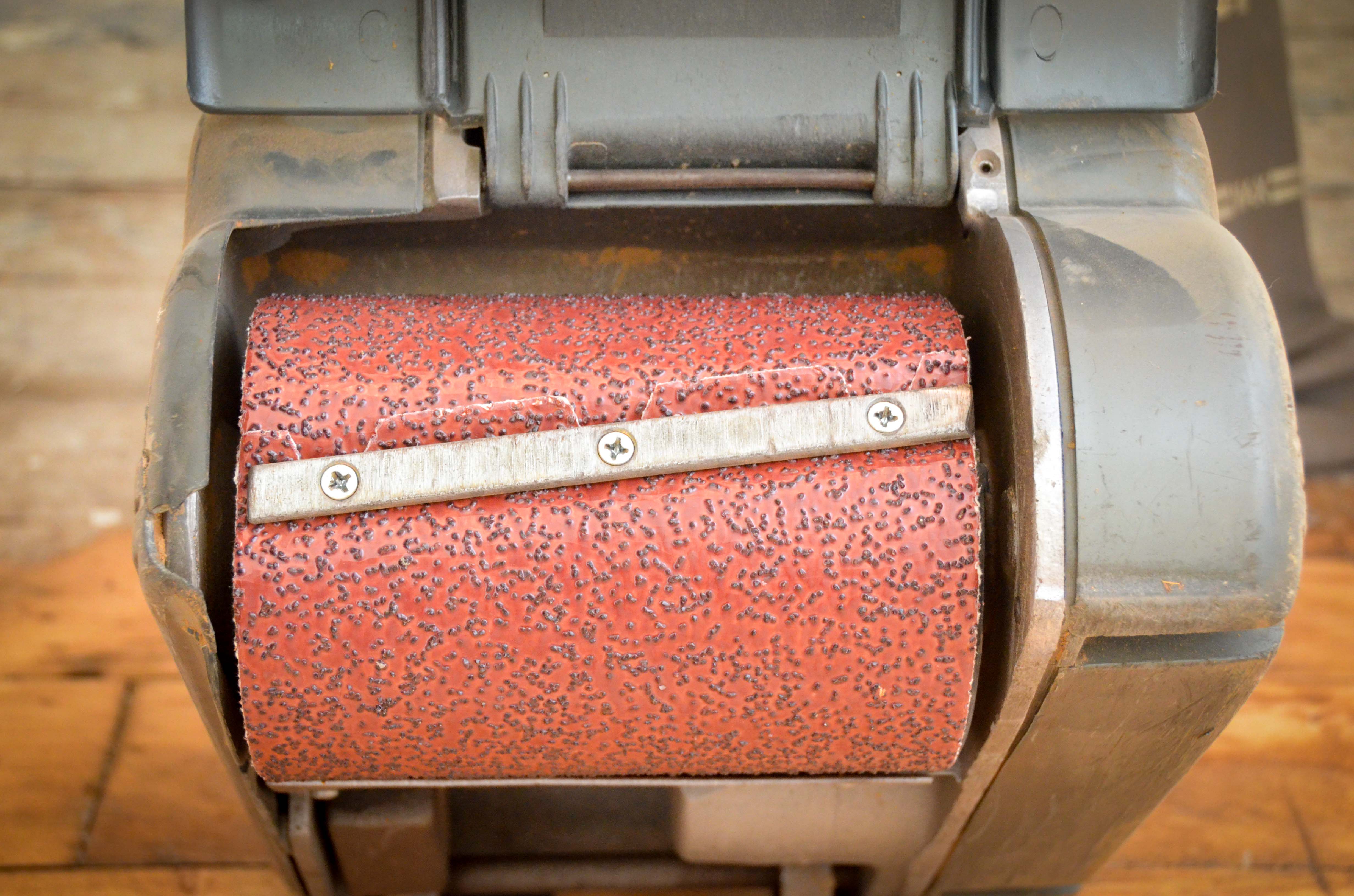 While you are looking at the sandpaper, check out that bar.  Every time I need to remove and replace the sandpaper I have to loosen that bar, take out the sandpaper, feed new paper around the roll, and then reattach the bar.  Not terribly complicated, but it definitely slows the process down.  The paper for this sander only lasts 100 square feet.  That’s not very much…  maybe a little more than half of a room.  Another thing that slows down the process is emptying the bag of sawdust.
