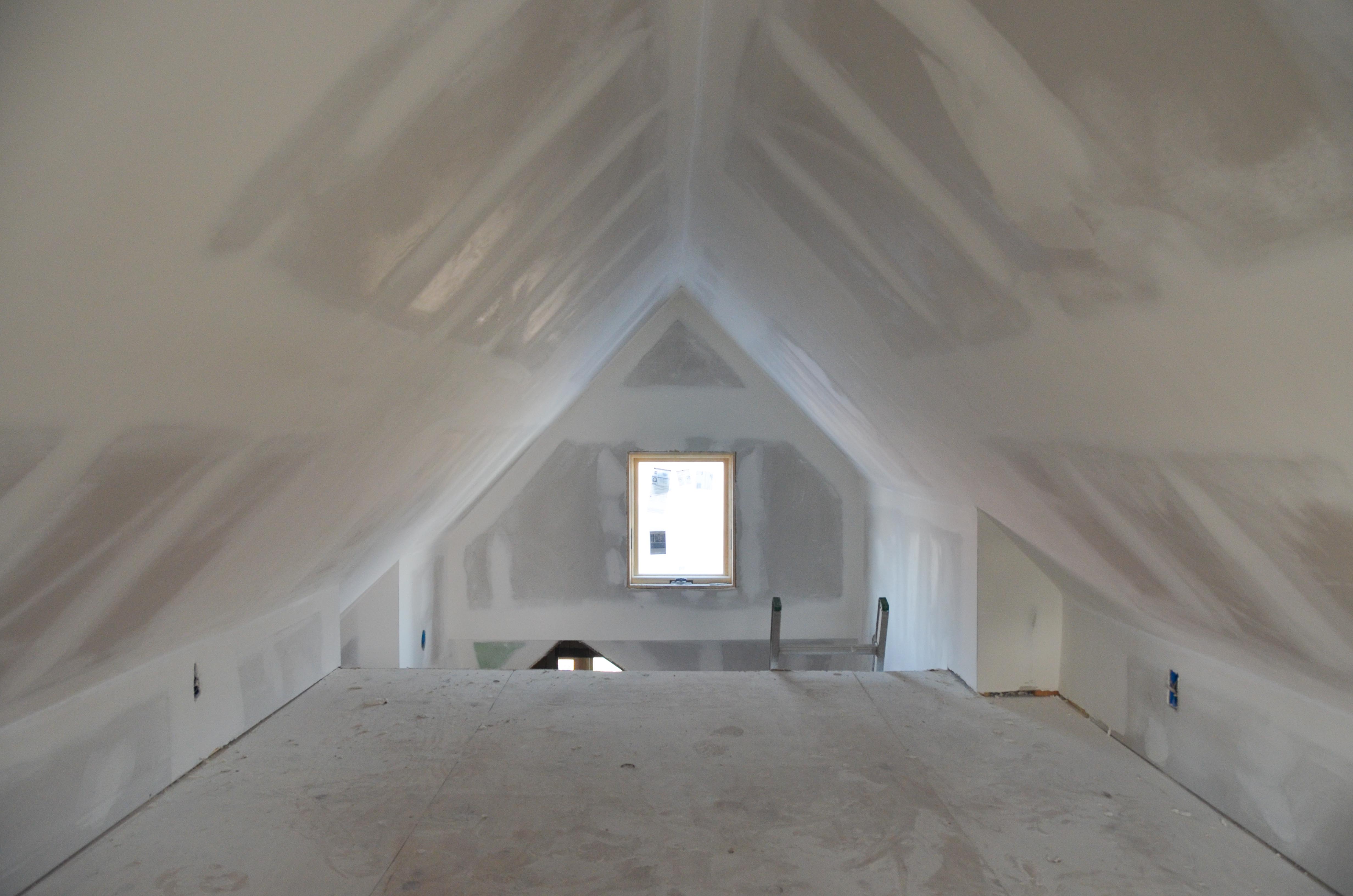 Finally, about one year after we bought the house, the new rooms we created upstairs received drywall.