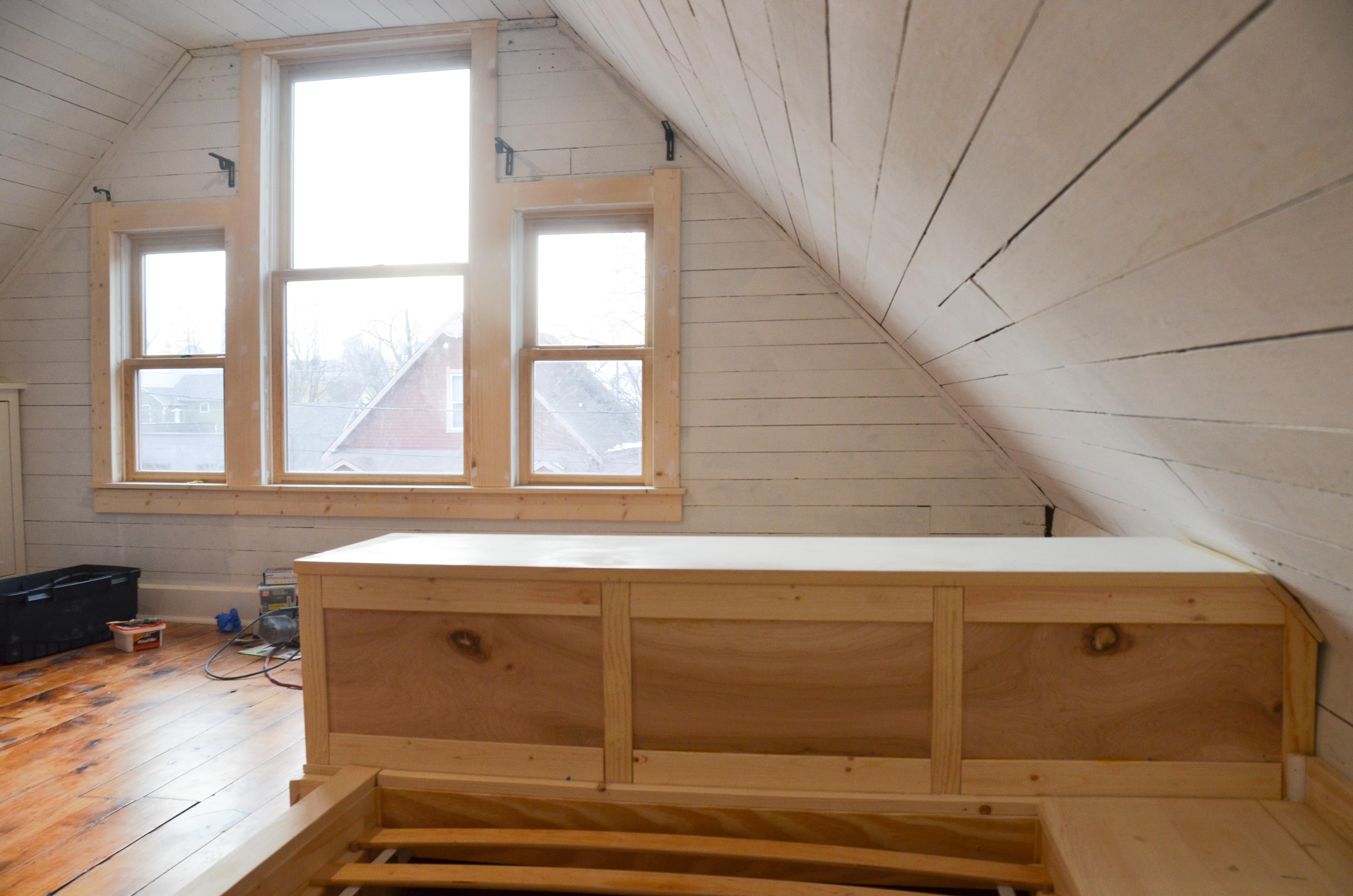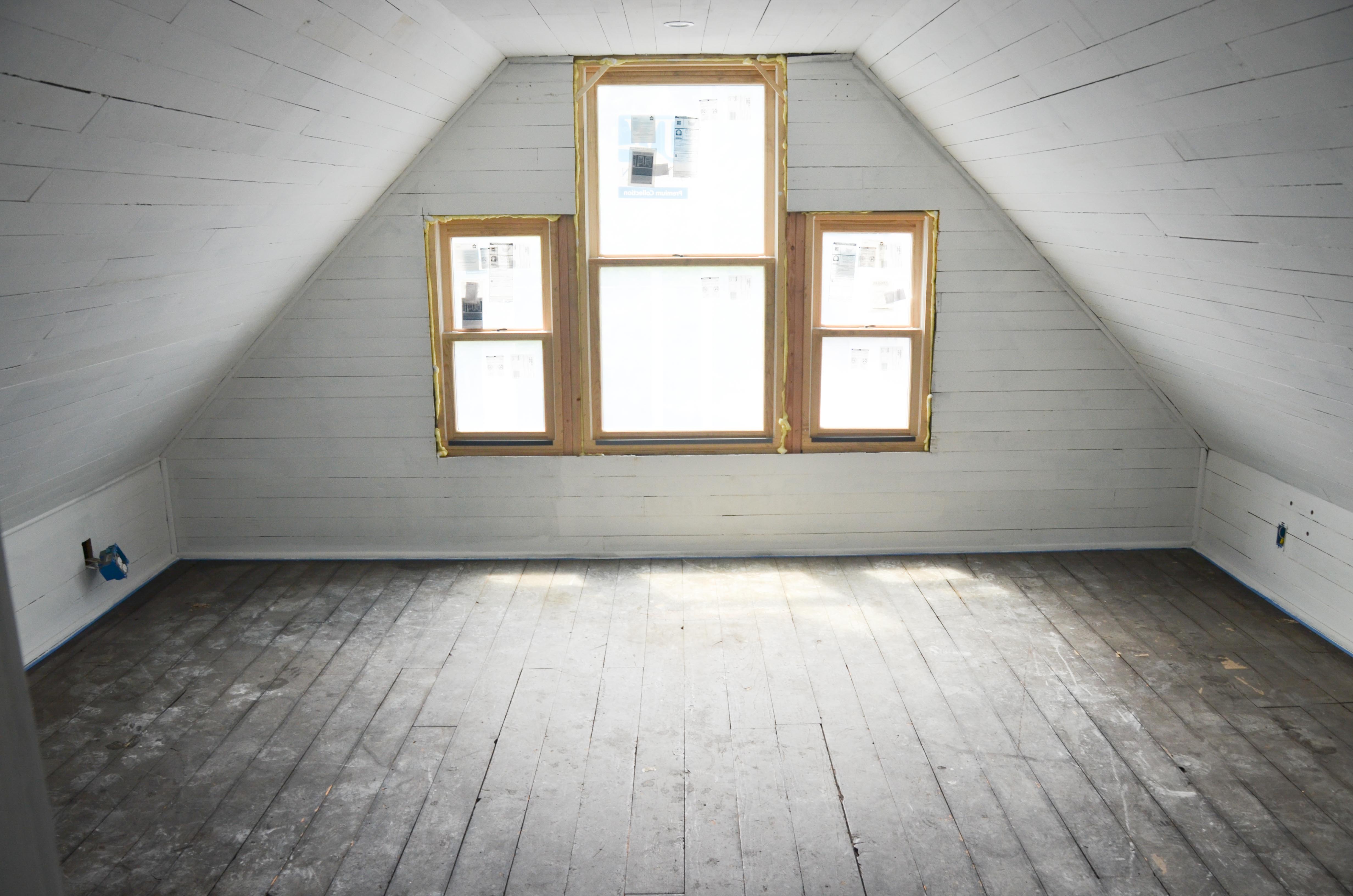 You can tell from the picture above that there were originally 3 small windows in this room. We applied for approval from the historic preservation committee to enlarge these windows to comply with egress requirements for a bedroom. Our request was approved and the new windows were ordered. For weeks, after ripping out the red fan, Lucy would not stop telling complete strangers “my room is broken.” We got a lot of weird looks.